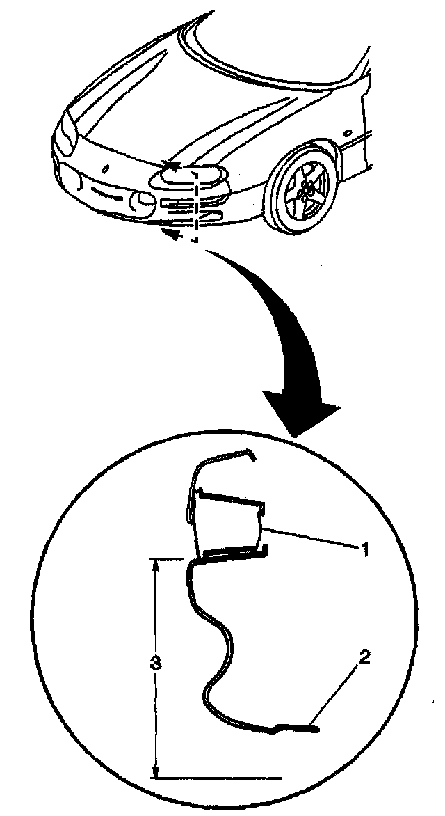 1. Calculate the trim heights (3) as measured from the ground to the bottom of the park/turn signal lamp (1) after each jounce/rebound cycle. Record your measurement.