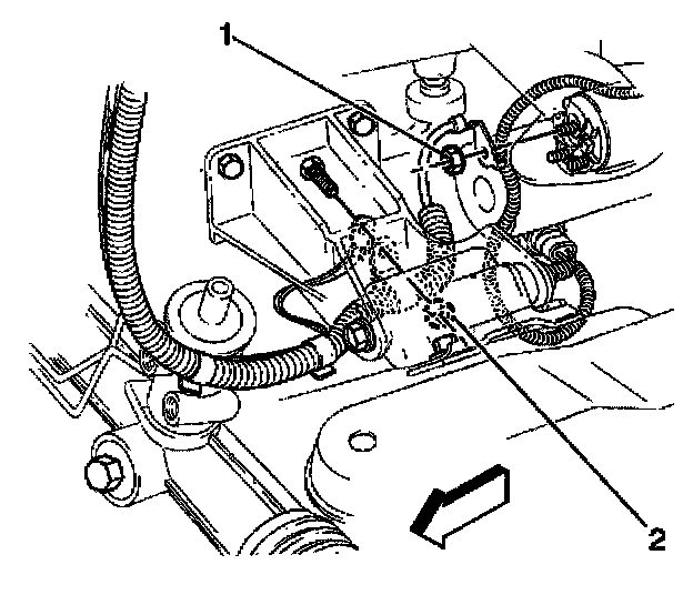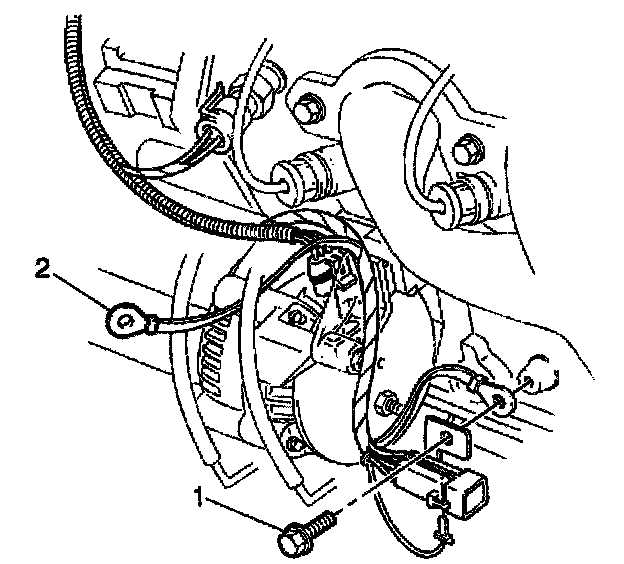 2. On the 5.7 L engine, remove the engine wiring harness ground bolt from the block (1).