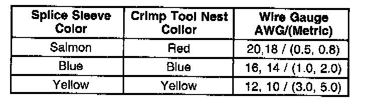 5. Select the proper splice sleeve (2) and the required crimp nest tool, refer to the Crimp and Seal Splice Table.