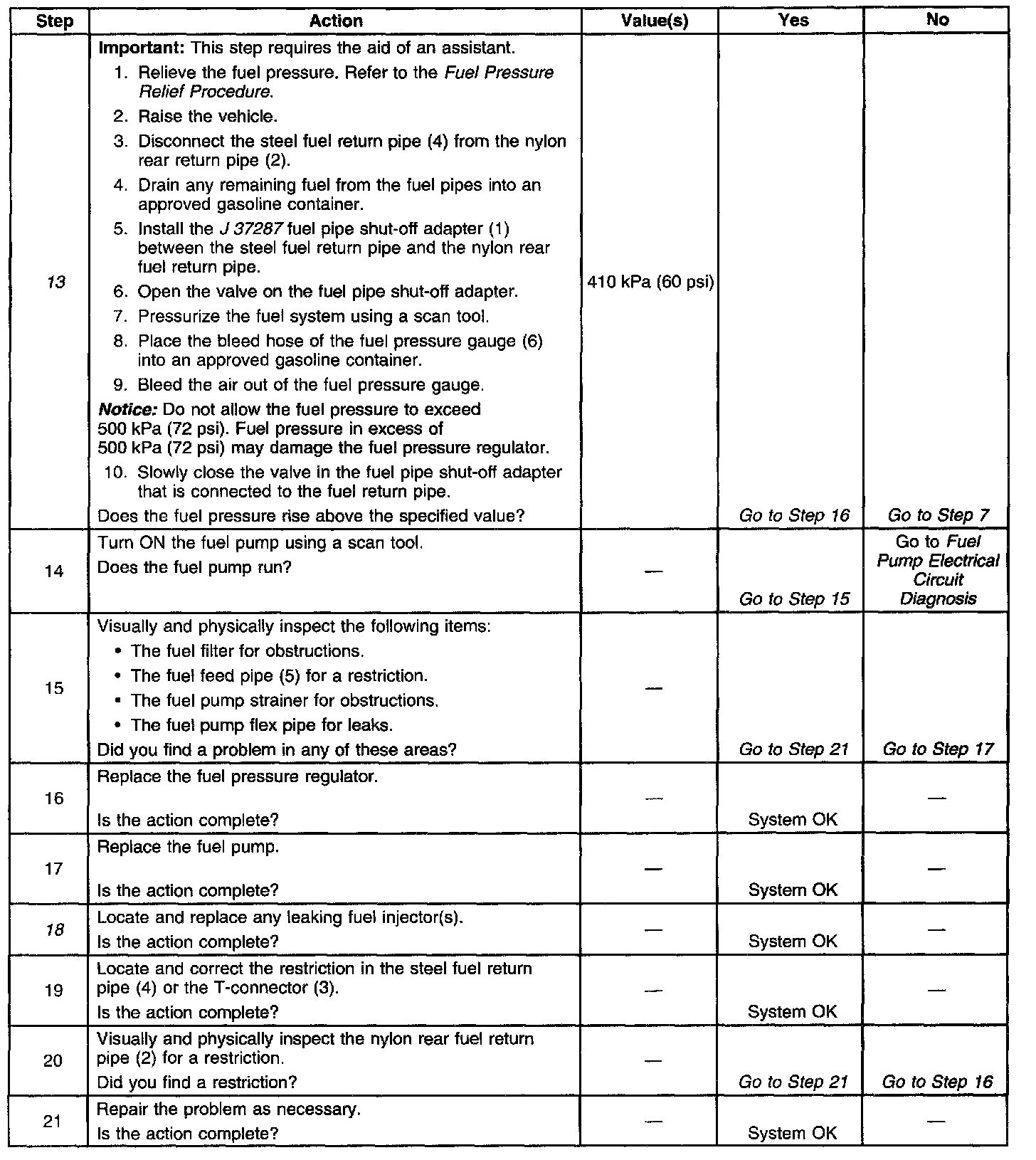 11. This test determines if the high fuel pressure is due to a restricted fuel return pipe or if the high fuel pressure is due to a faulty fuel pressure regulator.