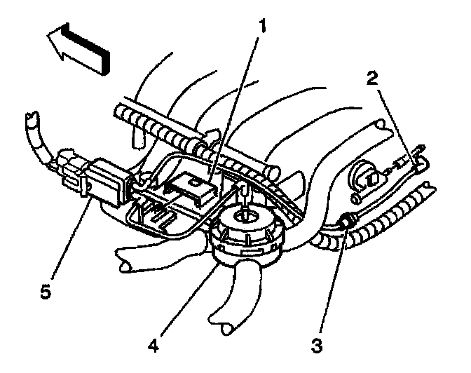 1. Remove the vacuum line from the AIR Pump Shut Off Valve (4) vacuum port.