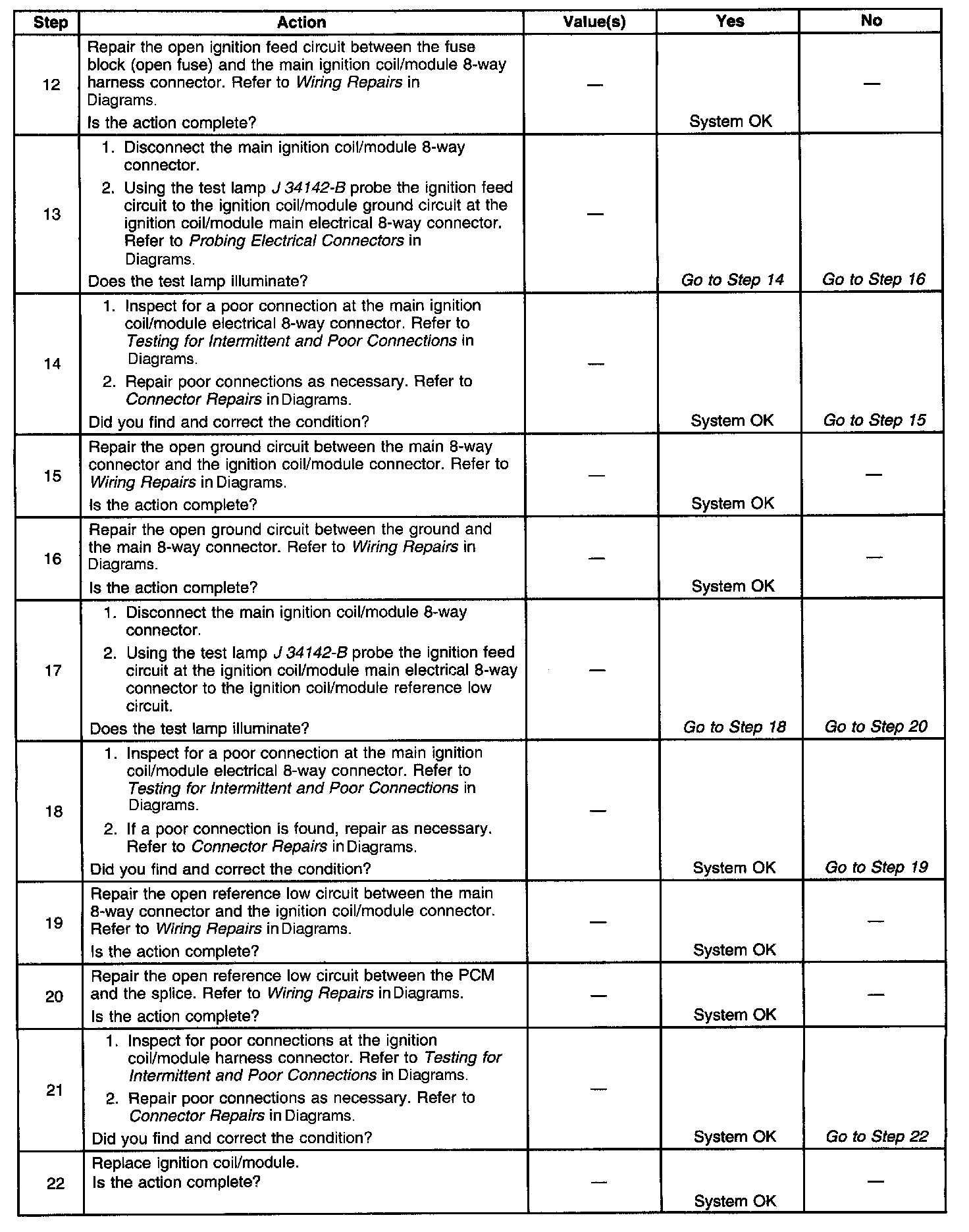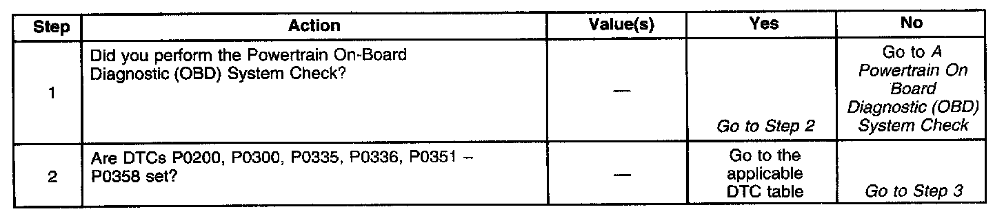 The numbers below refer to the step numbers on the diagnostic table.