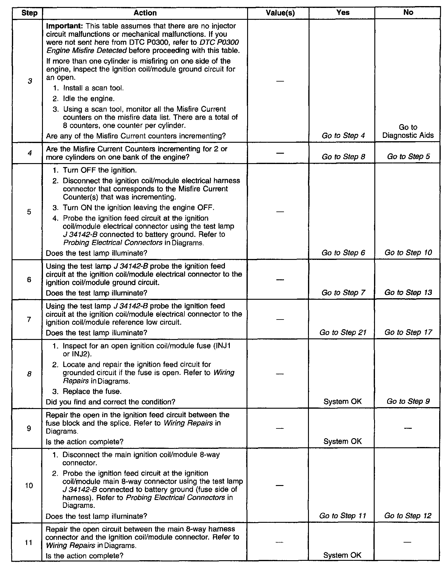 4. A good indication that the fuse is open is more than 2 of the Misfire Current Counters are incrementing on one side of the engine. Inspect the ignition feed circuit for a grounded circuit.