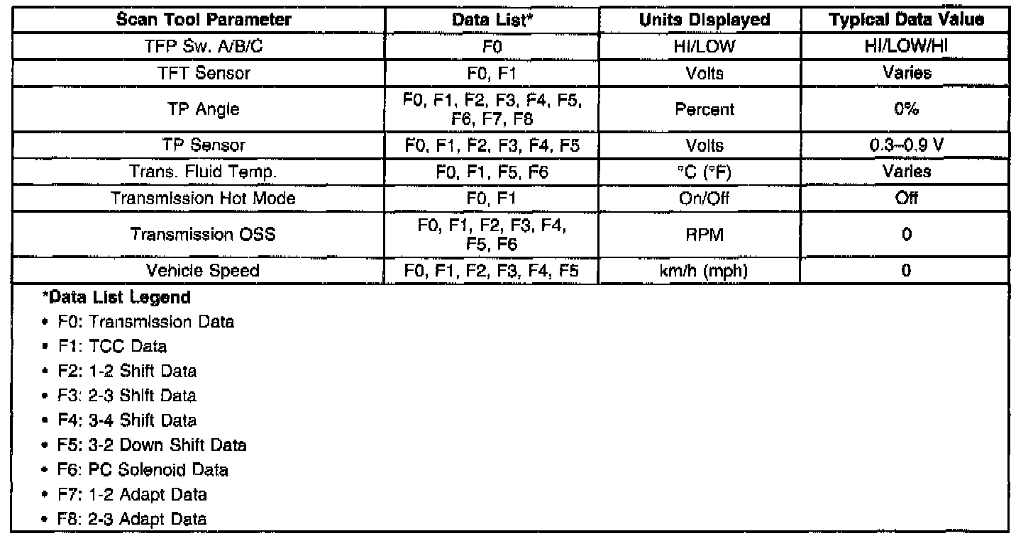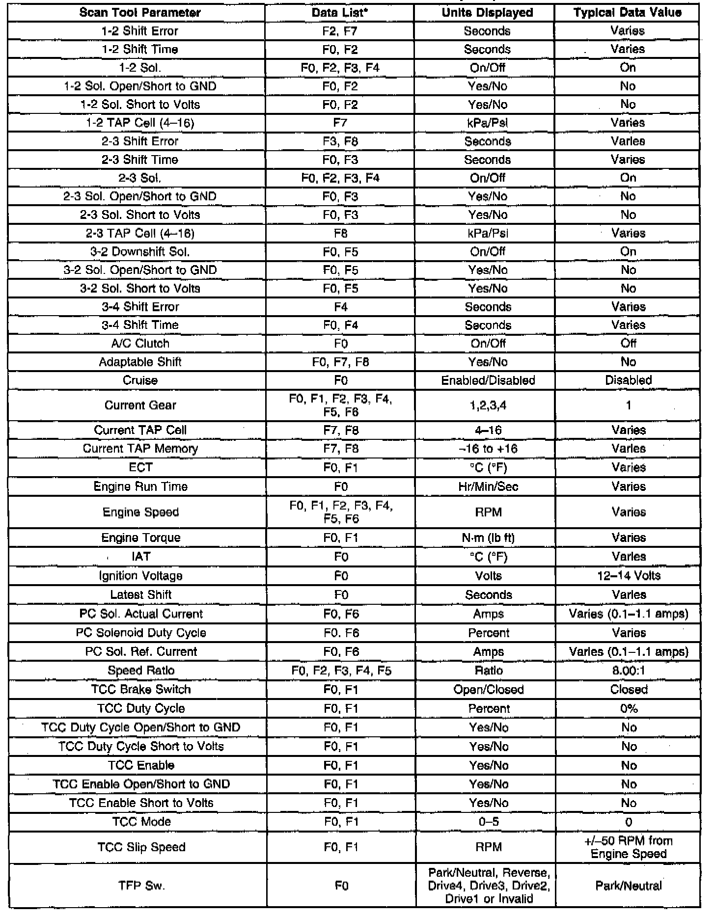 Only the parameters listed below are used in this section for diagnosing. If a scan tool displays other parameters, the values are not recommended by General Motors for use in diagnosis. Scan tool values below were recorded under the following conditions: