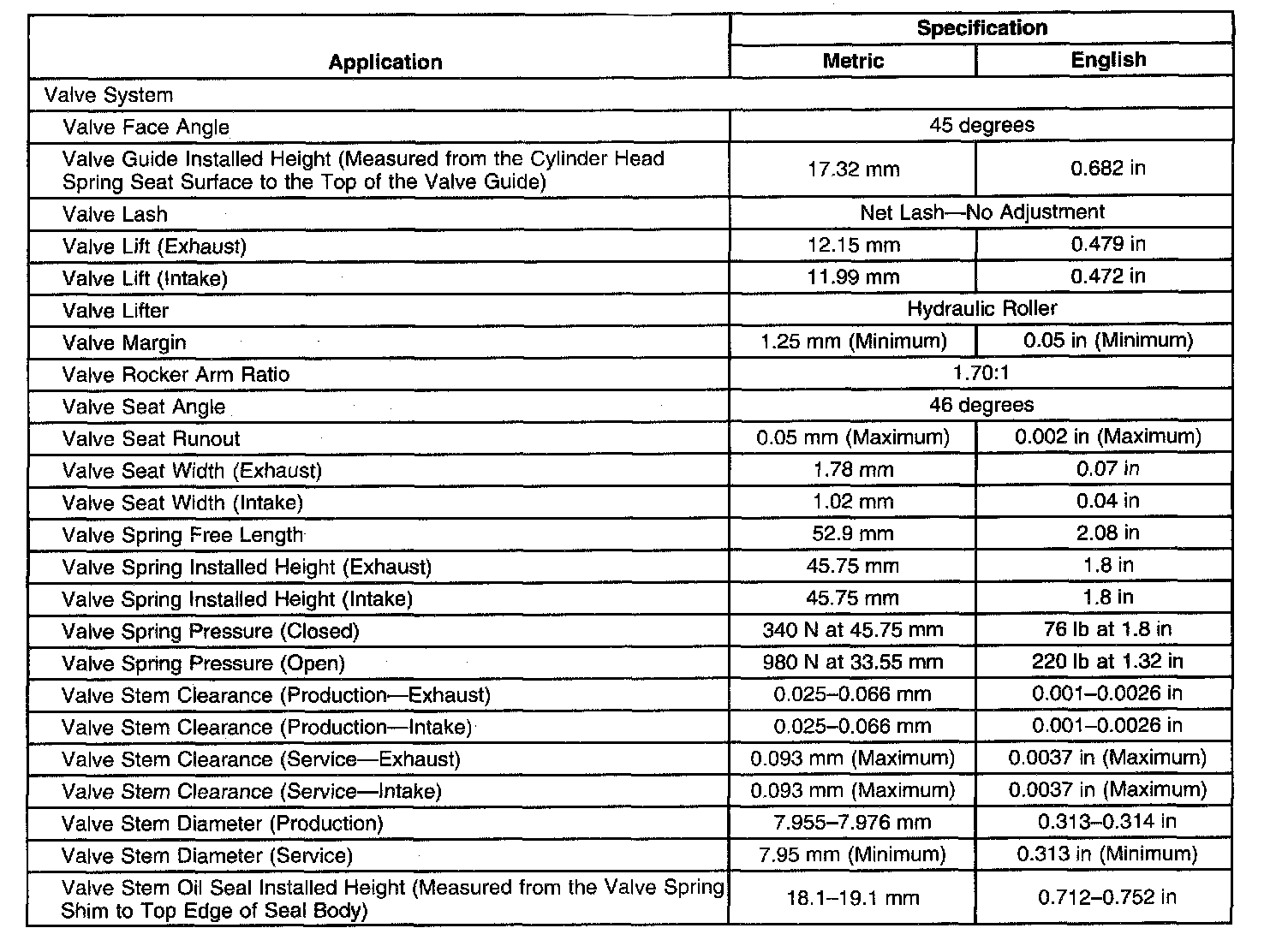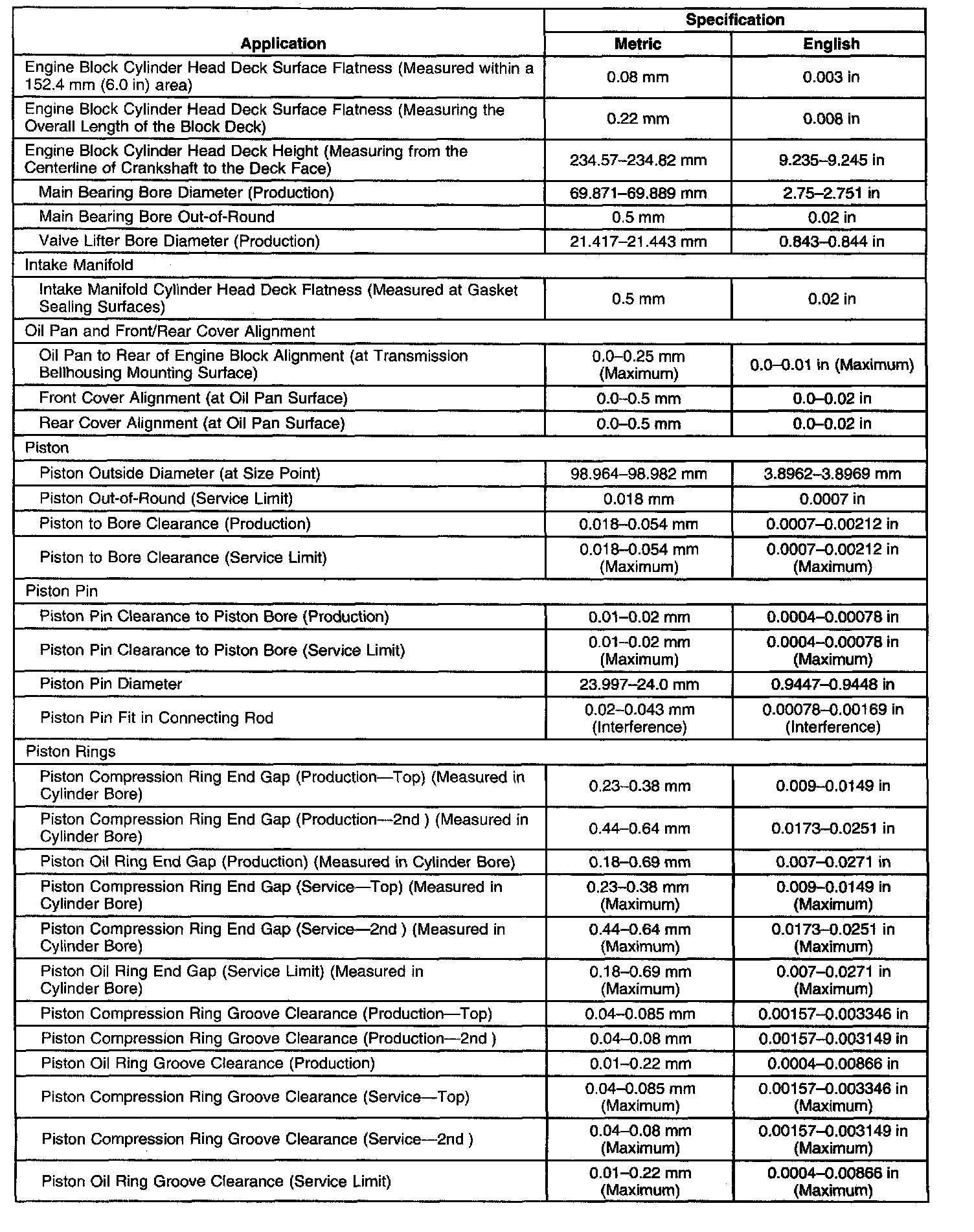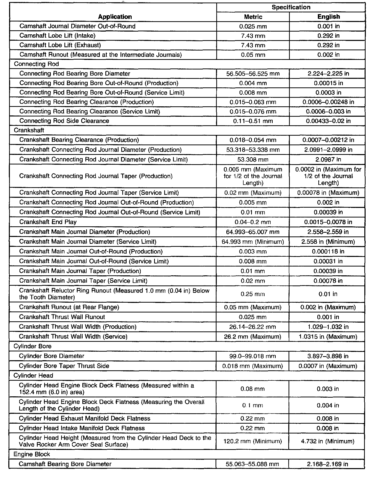 Engine Mechanical Specifications