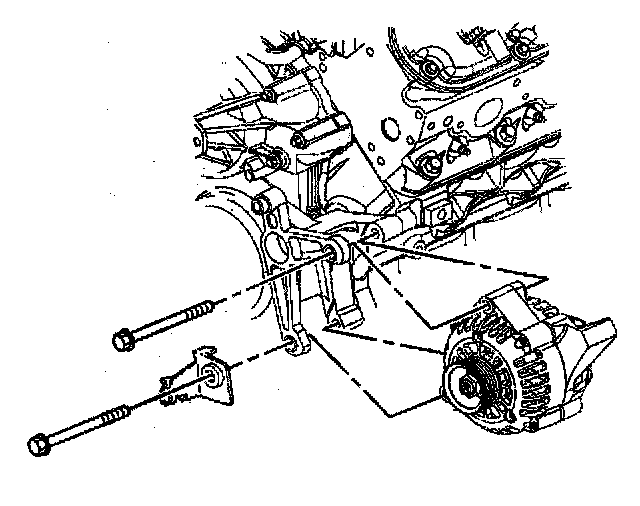 7. Remove the front generator mounting bolts and oil cooler clip.