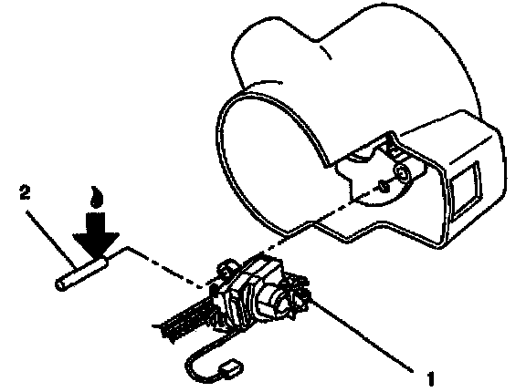 3. Install the switch actuator pivot pin (2) into the pivot and pulse switch assembly (1) and the lock housing cover and sleeve assembly.