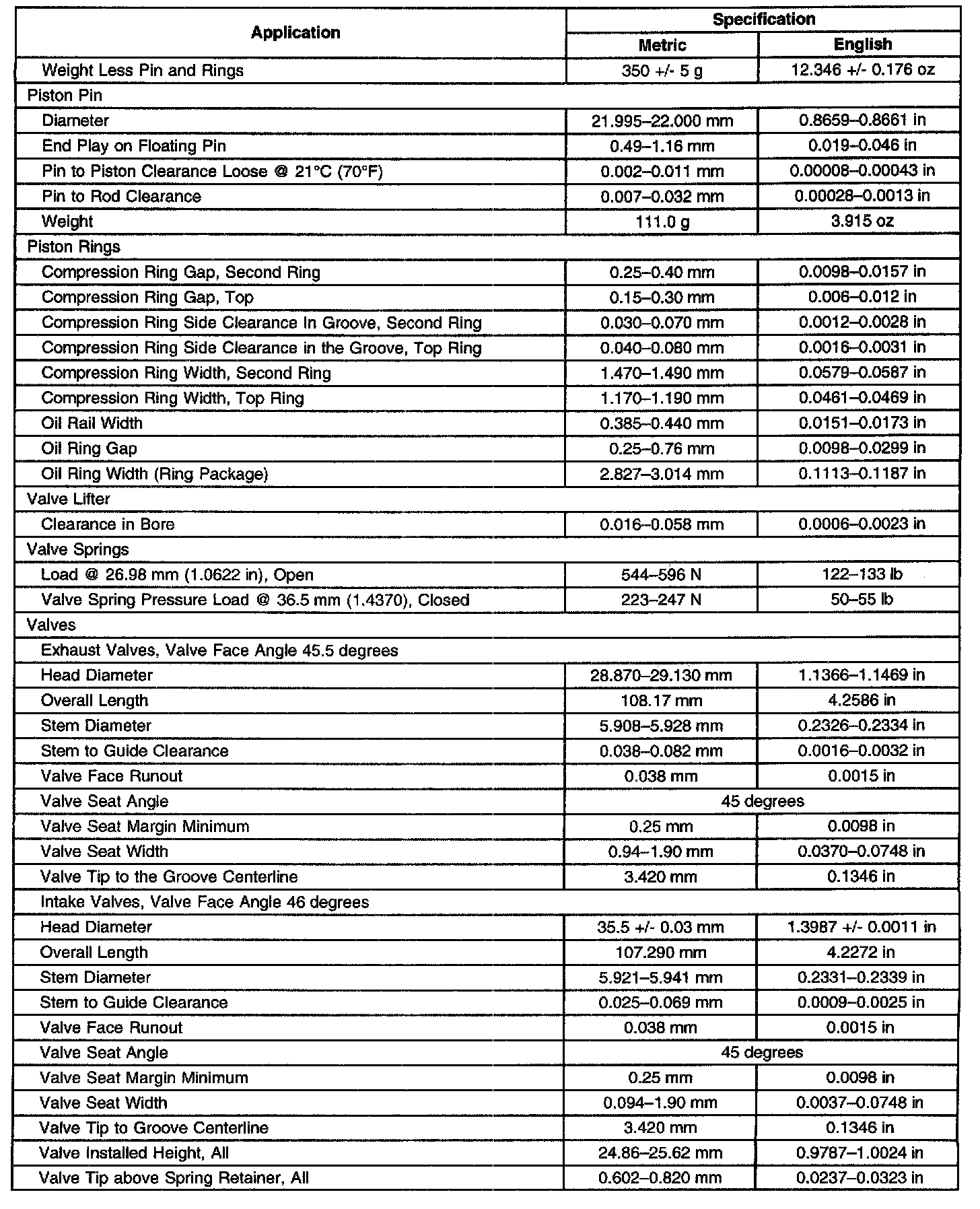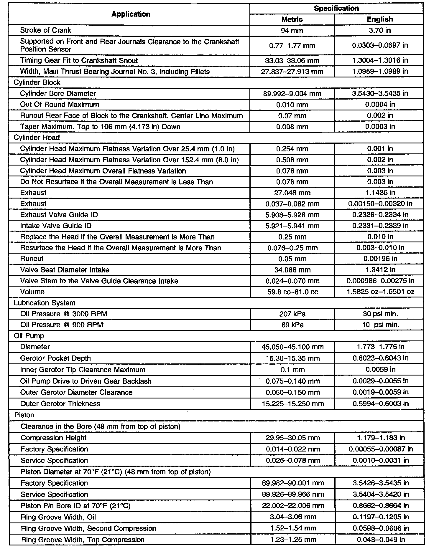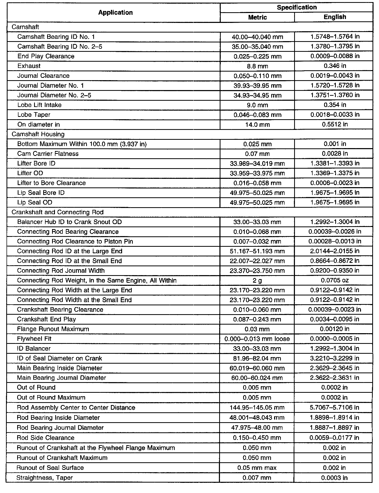 Engine Mechanical Specifications
