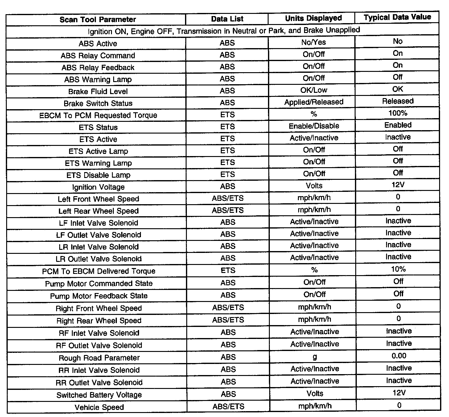 Scan Tool Data List