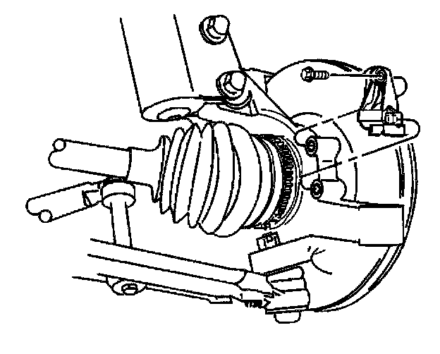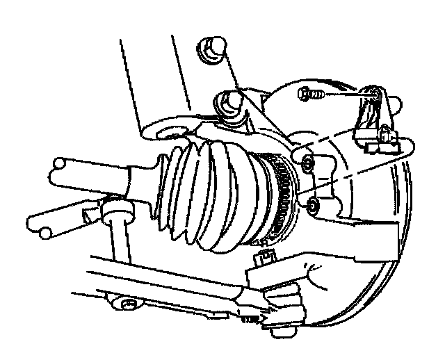 4. Remove the front wheel speed sensor. If the sensor will not slide out of the knuckle, remove the brake rotor and use a blunt punch or equivalent tool in order to push the sensor from the back side of the knuckle.