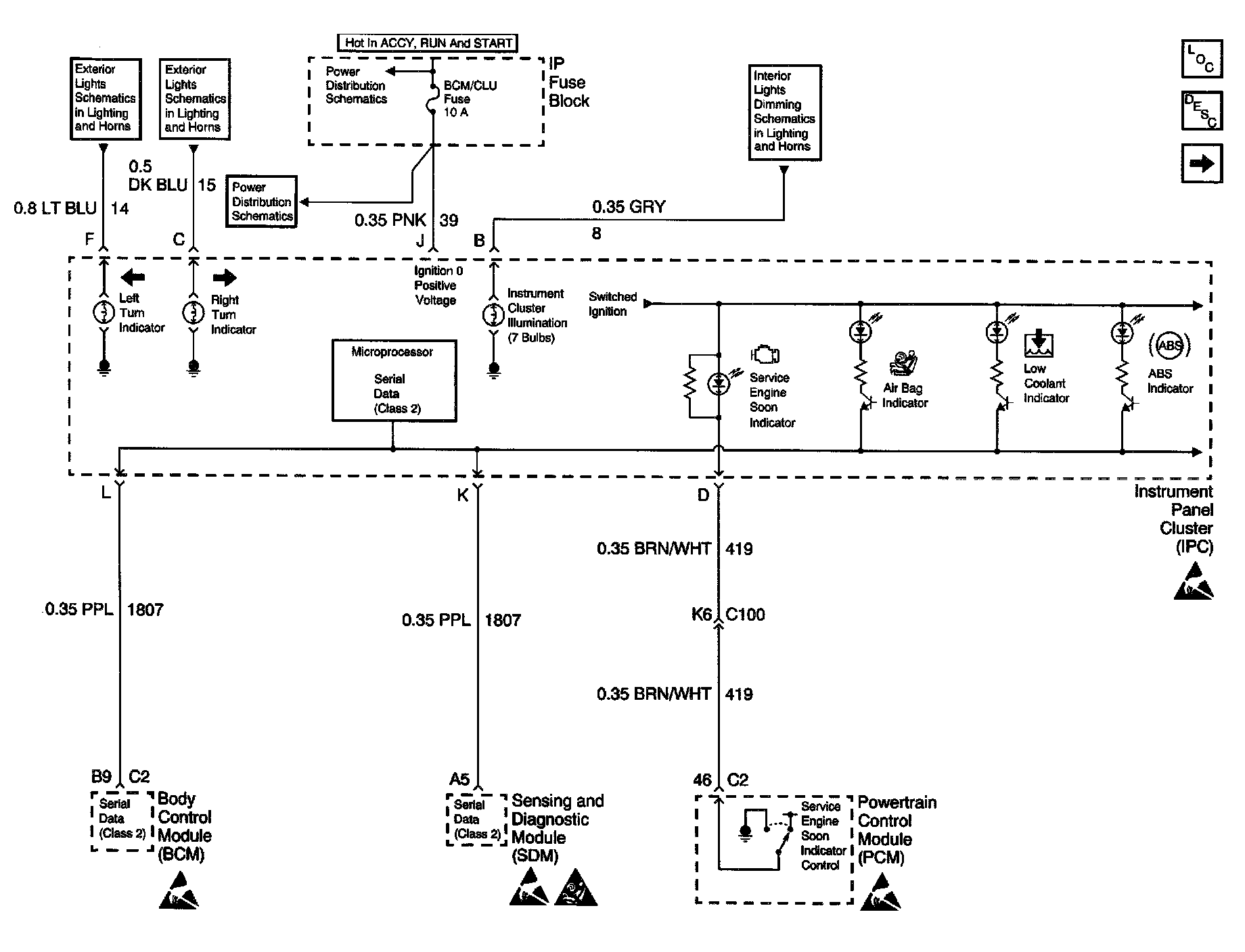 Instrument Cluster: Analog Schematics: Power and Class 2 Data Lines: