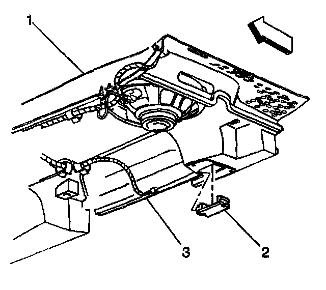 4. Press the rear compartment lamp (2) into the rear shelf panel in order to engage the tabs.