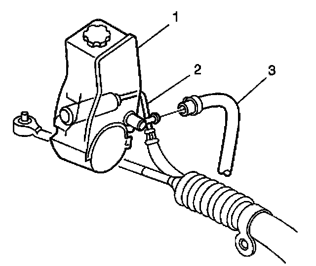 1. Remove the power steering return hose (3) from the steering pump (1).