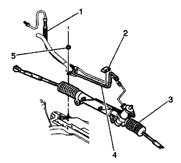 6. Remove the power steering return hose (4) from the vehicle.