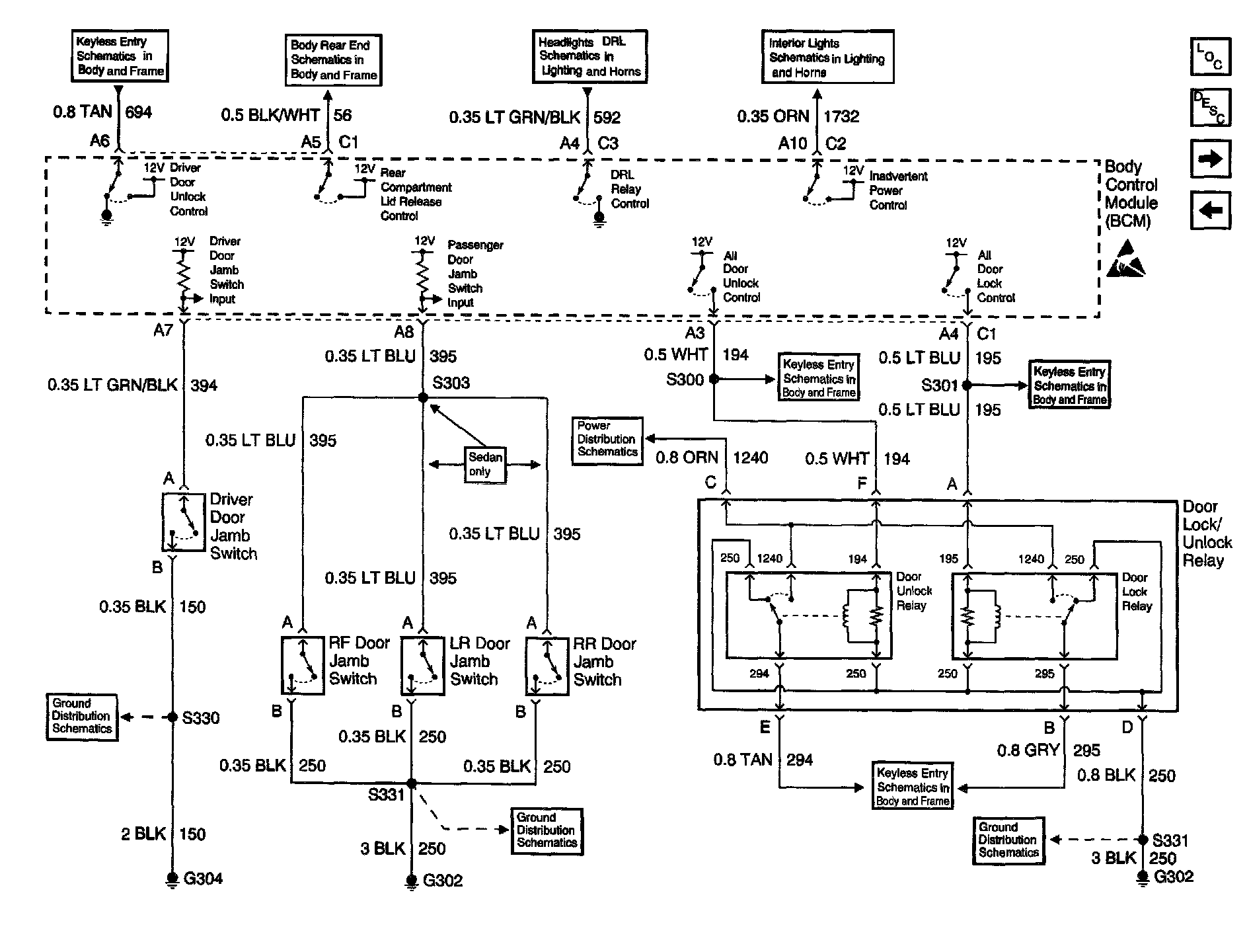 Body Control Module Schematics : Door Jamb Switches and Door Lock/Unlock Relay: