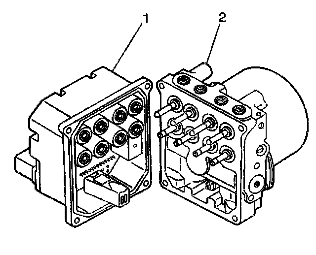 7. Separate the EBCM (1) from the BPMV (2) by gently pulling apart until separated.