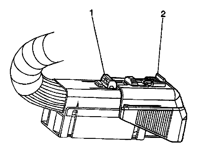 2. Remove the Connector Position Assurance (CPA) (2) from the connector lock tab (1).