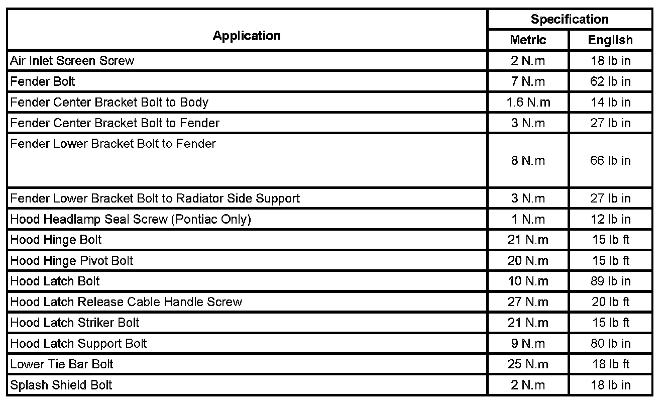 Fastener Tightening Specifications