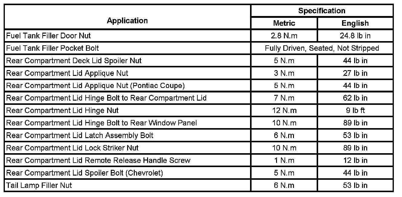 Fastener Tightening Specifications