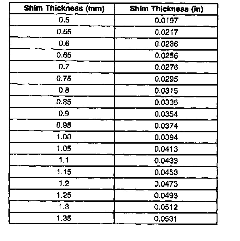 Shim Size Specification