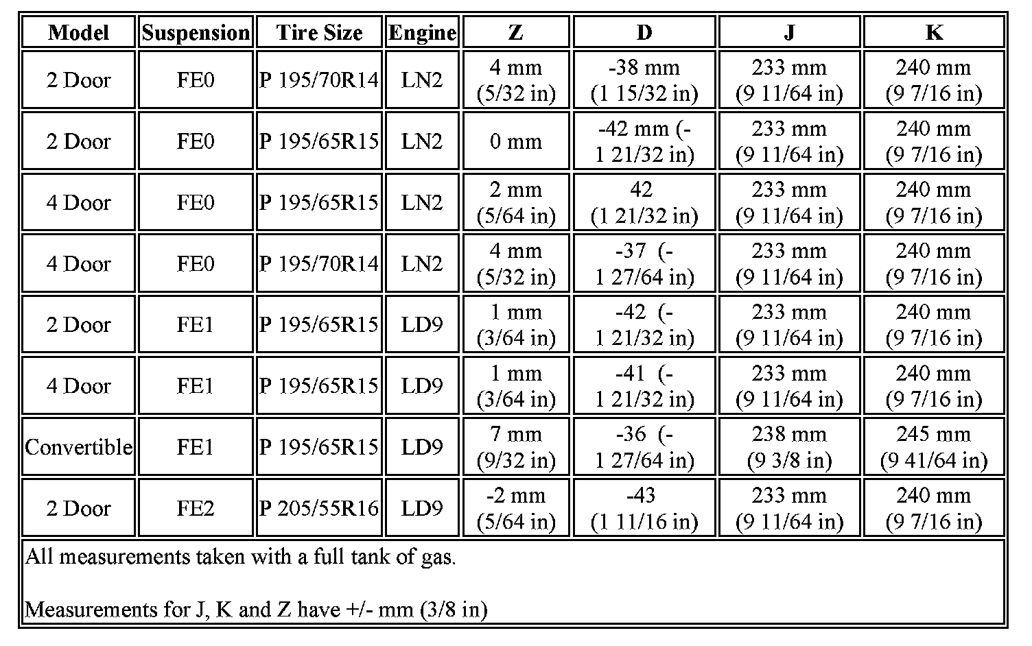 Trim Height Specifications