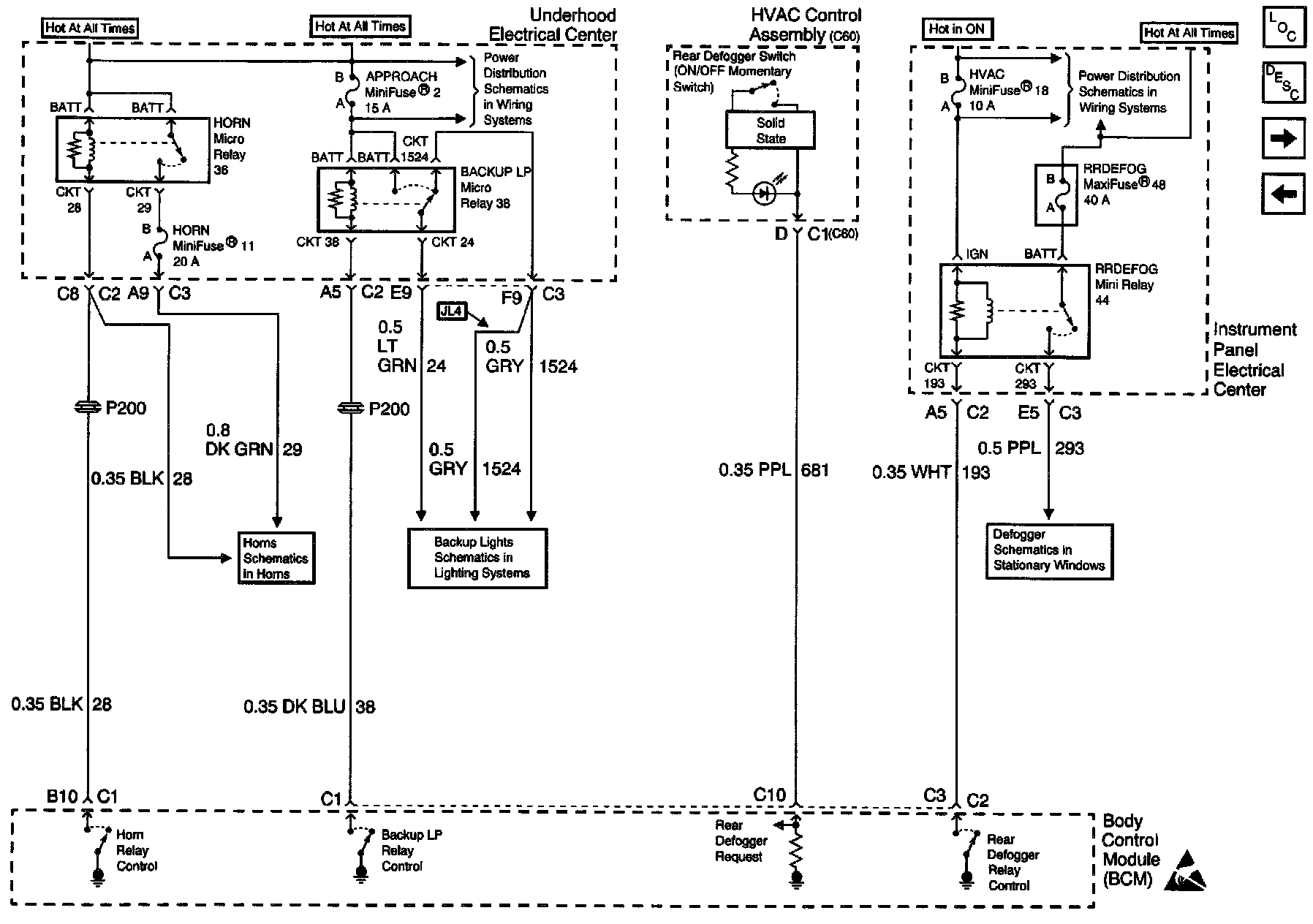 Body Control Module Schematics: Horn, Backup And Rear Defogger System: