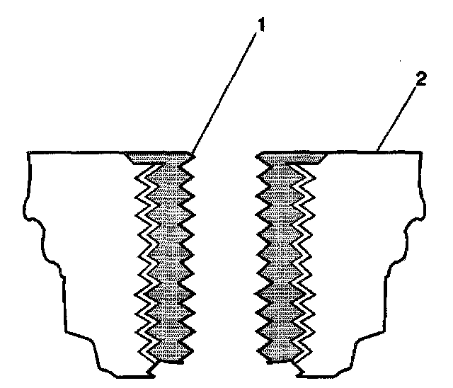 11. Apply threadlock Loctite 277, J 42385-109 (1), or equivalent to the insert OD threads (2).