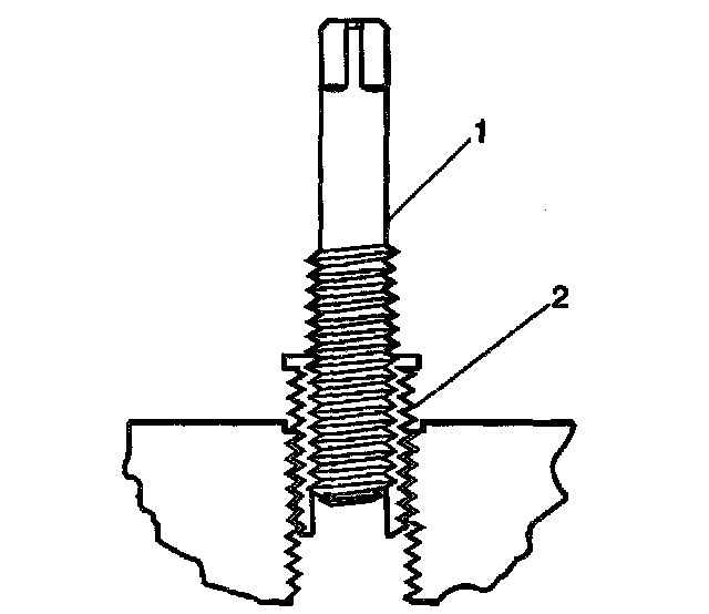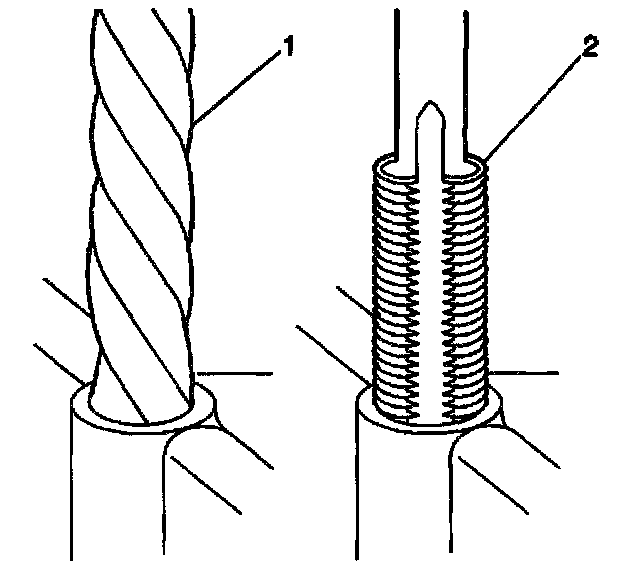 1. Drill out the threads of the damaged hole (1).