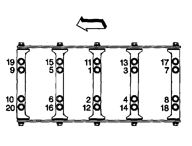 The outer bolt hole locations (11-20) have the shallower counterbores. Use sleeve J 42385-316 with the drill.