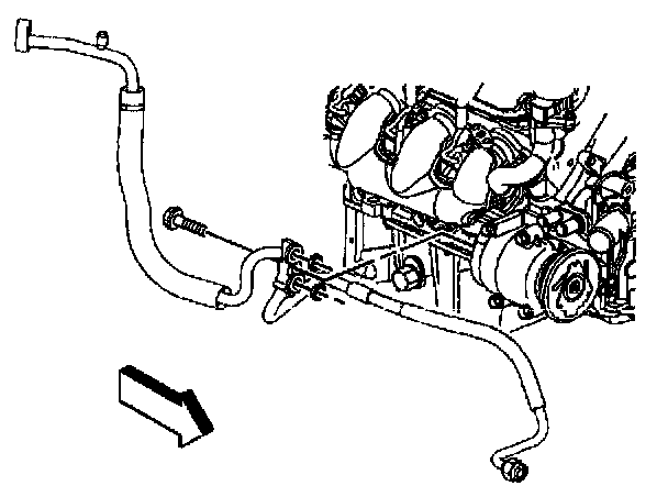 8. Remove the compressor hose to compressor retaining bolt.