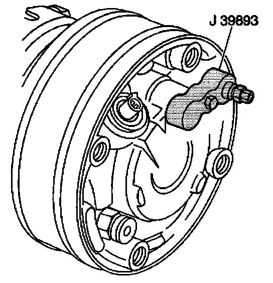 1. With the sealing washers in place, install the J 39893 on the rear head of the compressor.