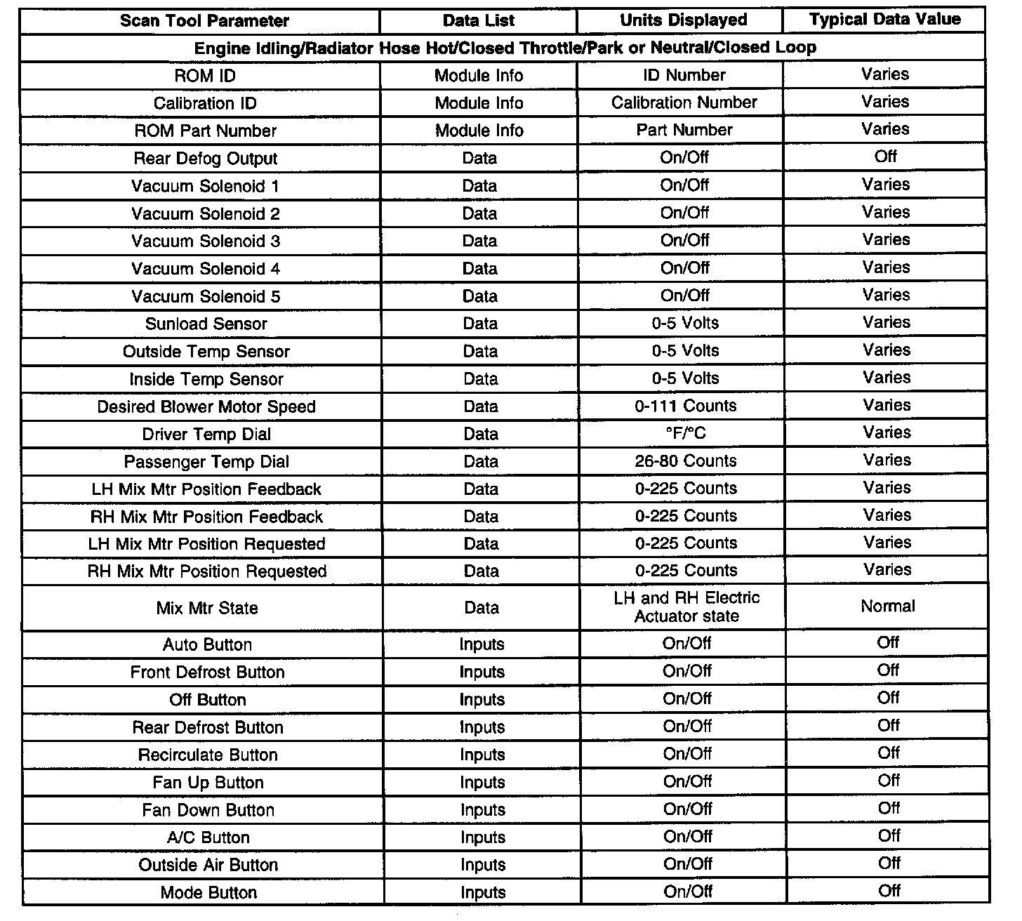 Scan Tool Data List - Heating And Air Conditioning