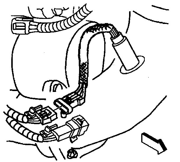 REMOVAL PROCEDURE (BANK 2 SENSOR 1)NOTE: The heated oxygen sensors each use a permanently attached pigtail and connector. Do not remove the pigtail from the heated oxygen sensor. Damage or removal of the pigtail or the connector affects proper operation of the heated oxygen sensor. Handle the oxygen sensor carefully. Do not drop the oxygen sensor. Keep the in-line connector and the louvered end free of grease, dirt, or other contaminants. Do not use cleaning solvents of any type. Do not repair the wiring, the connector, or the terminals. Replace the oxygen sensor if the pigtail wiring, the terminals, or the connector is damaged. Proper oxygen sensor operation requires an external air reference. This external air reference is obtained by way of the oxygen sensor signal and heater wires. Any attempt to repair the wires, the connectors, or the terminals results in the obstruction of the air reference and degrades the oxygen sensor performance. A dropped oxygen sensor is a bad oxygen sensor.
