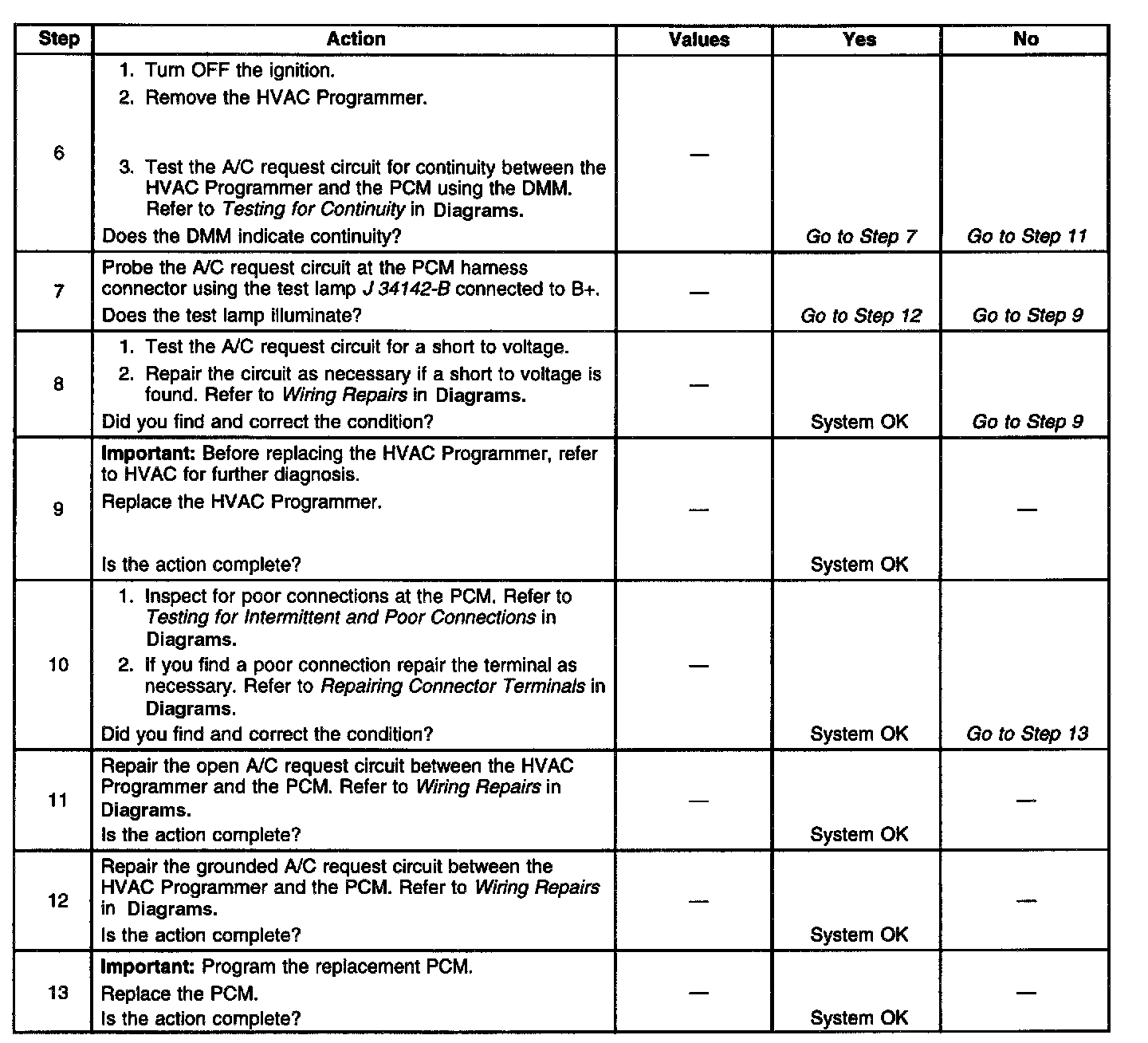 3. The request circuit is shorted to a voltage if the scan tool displays A/C request as YES.