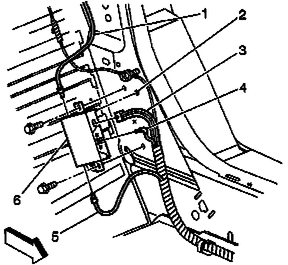 5. Remove the screws retaining the antenna module (6) to the lock pillar.