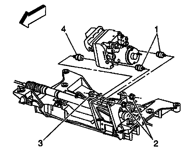 4. Lift the EBCM/BPMV out of the bracket high enough to allow clearance to remove the insulator mounting bolt and the EBCM.