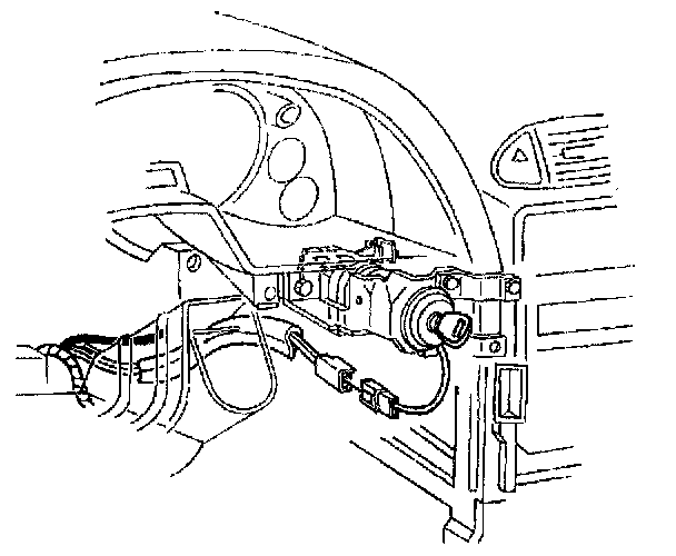 6. Remove the ignition switch lock cylinder electrical connector from the retaining tab on the side of the ignition switch.