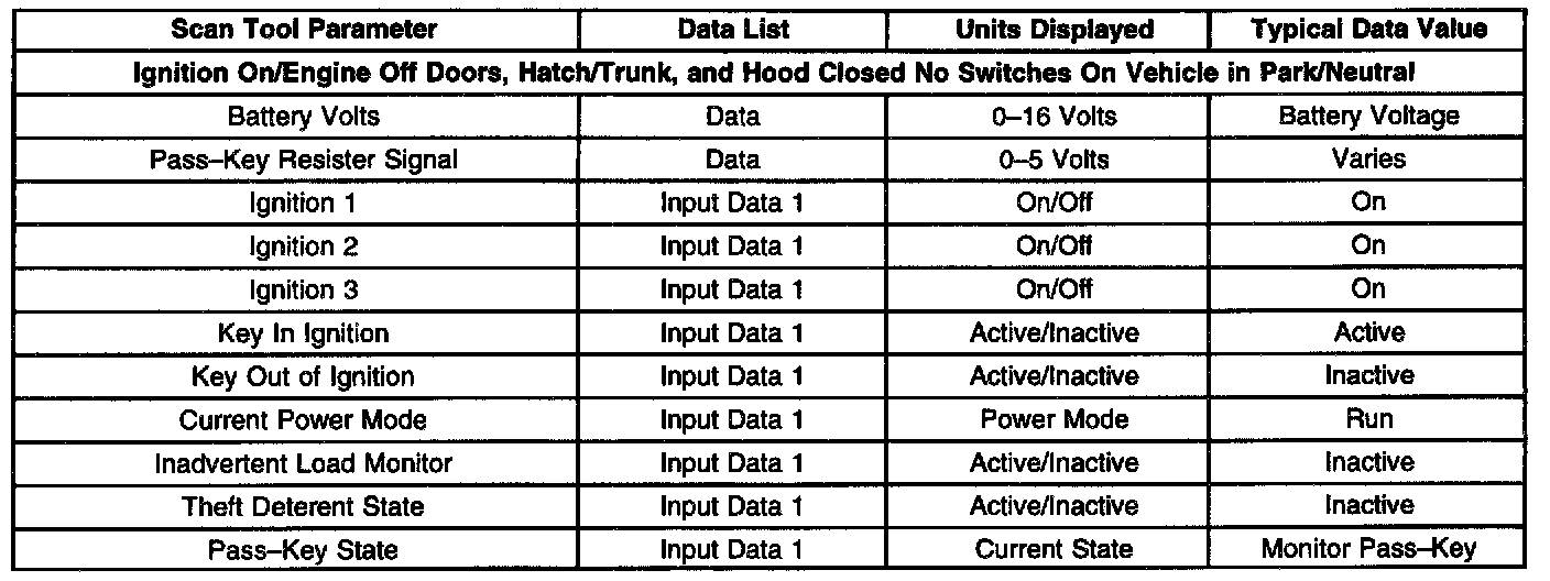 BCM Scan Tool Data List: