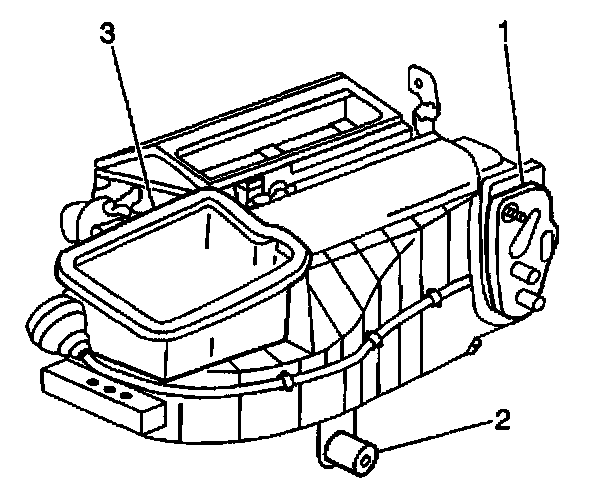 14. Remove and discard all of the outer HVAC module seals (1,2,3).