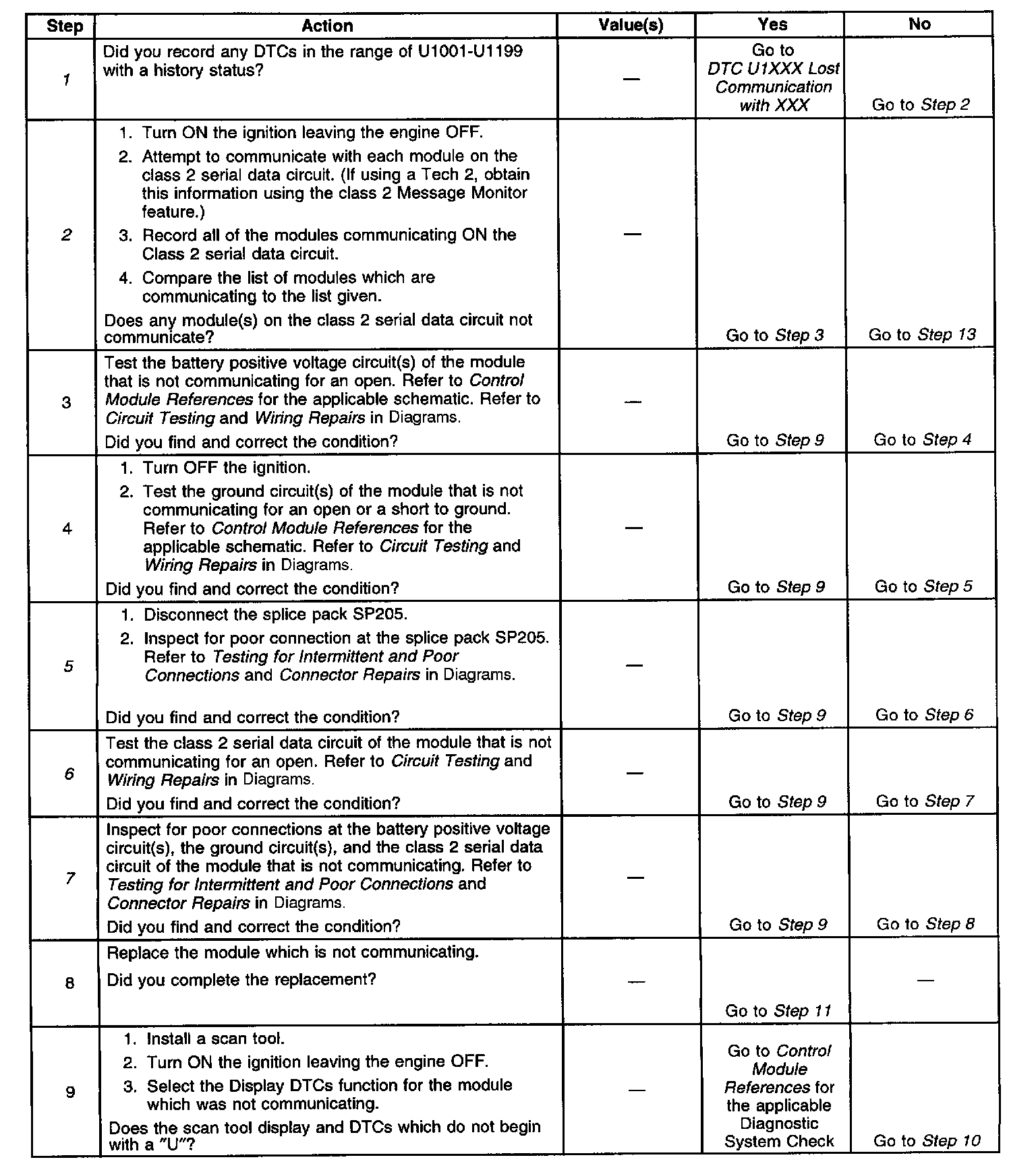 2. The module(s) which is not communicating is the likely cause of U1OOO or U1255 being set. The following modules communicate on the class 2 serial data circuit: