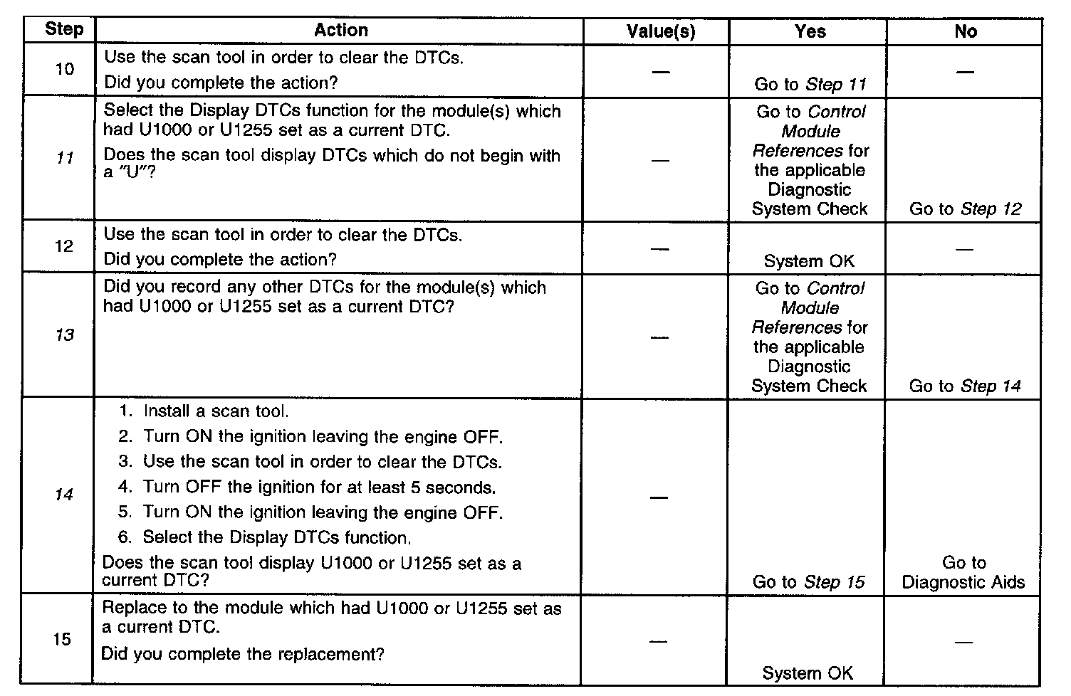 ^ A history DTC U1000 or U1255 will clear upon receipt of a scan tool Clear DTCs command.