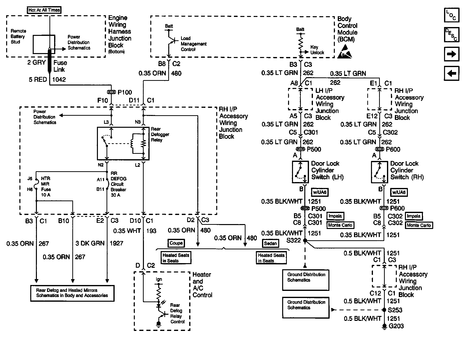 Body Control Schematics: Rear Defog Relay, Door Lock Cylinder Switches: