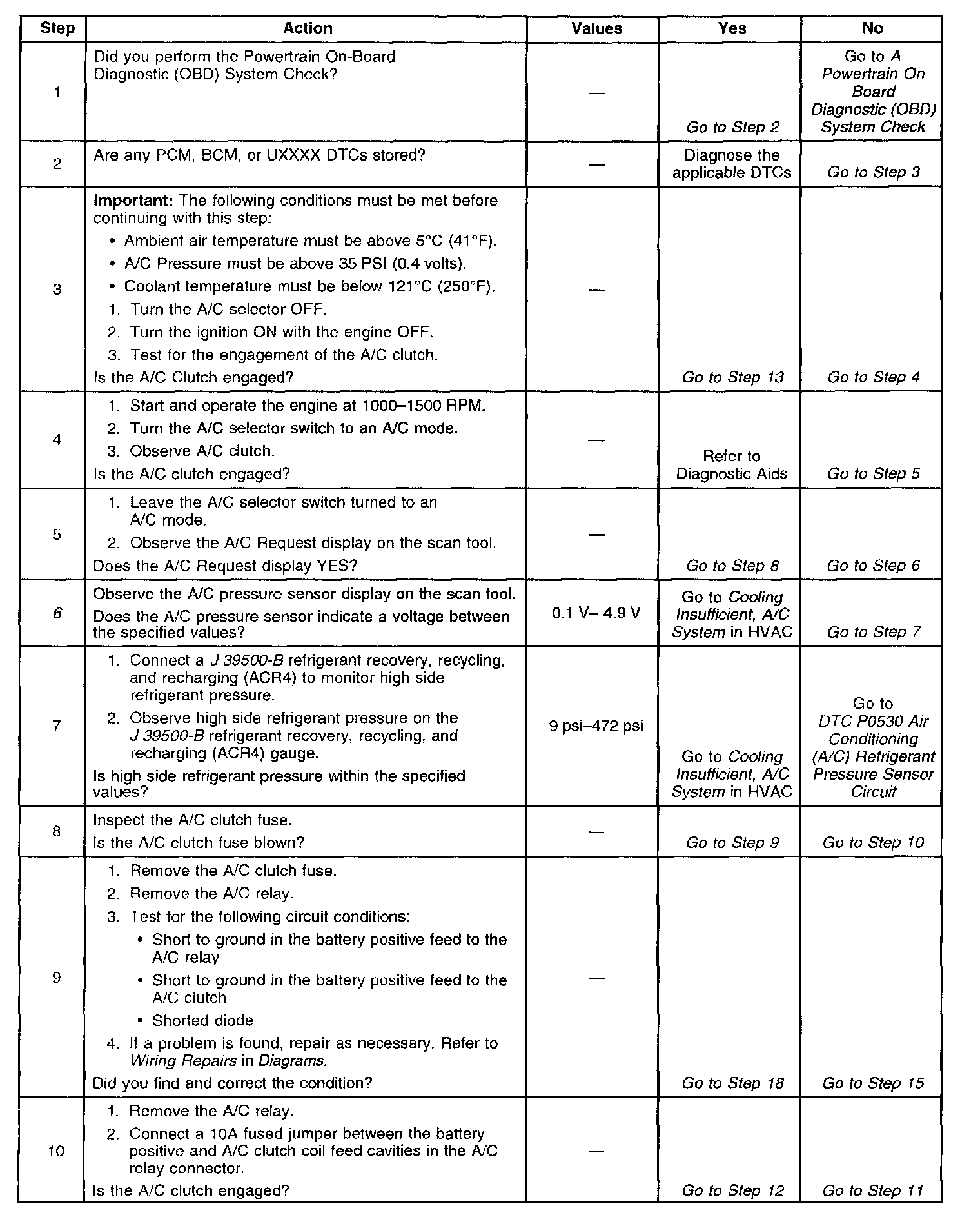 The PCM will enable the A/C unless any of the following conditions are met: