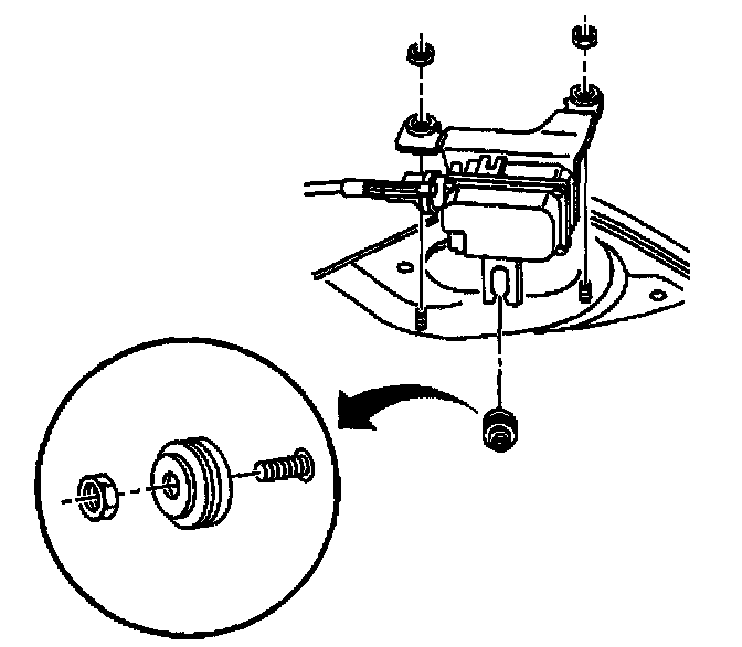 1. Install the cruise control module on the mounting studs located on the shock tower.
