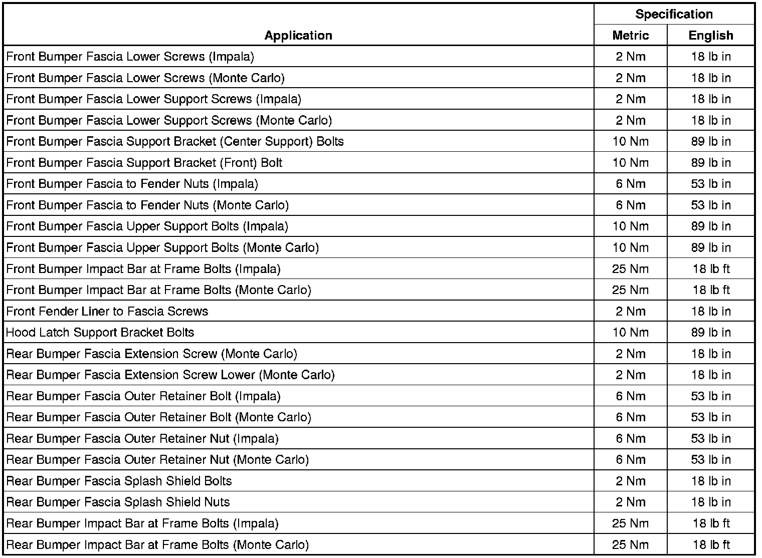 Fastener Tightening Specifications