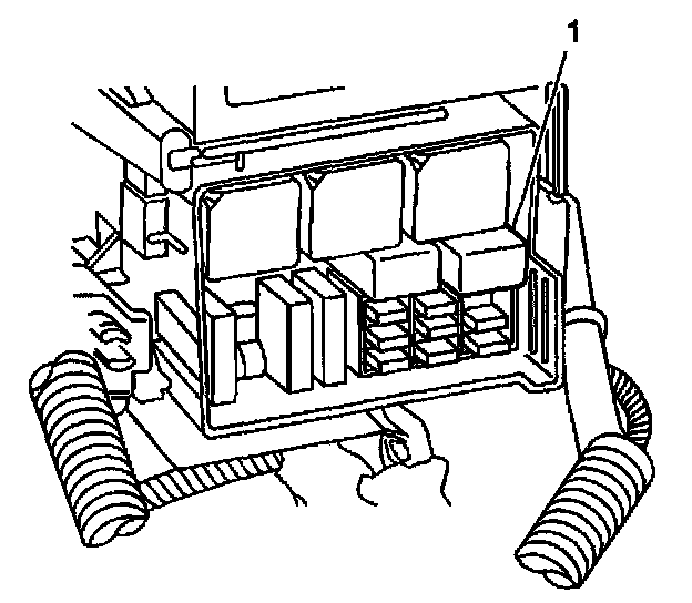 1. Install the A/C compressor relay (A/C CM PR) (1) into the engine wiring harness junction block (BOTTOM).