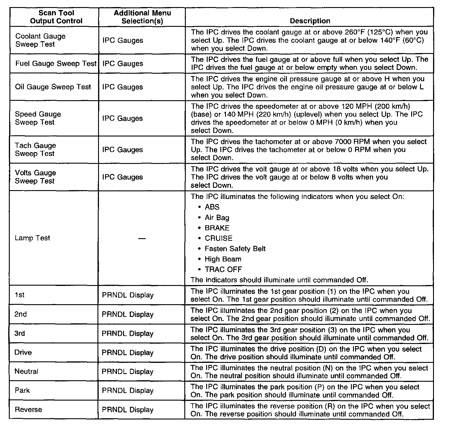 Scan Tool Output Controls: