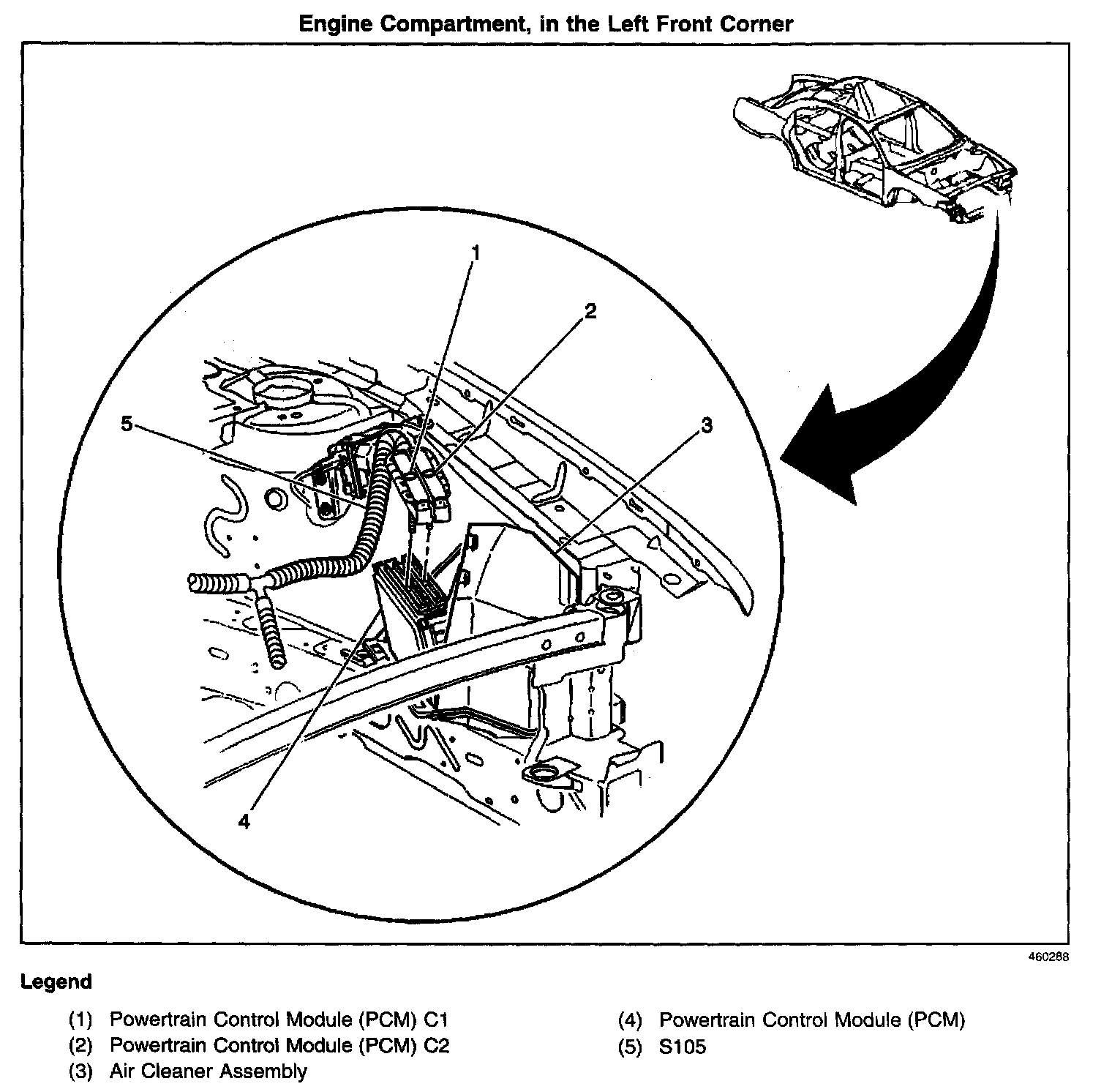 RH side of the engine compartment, forward of the strut tower, inside air box.