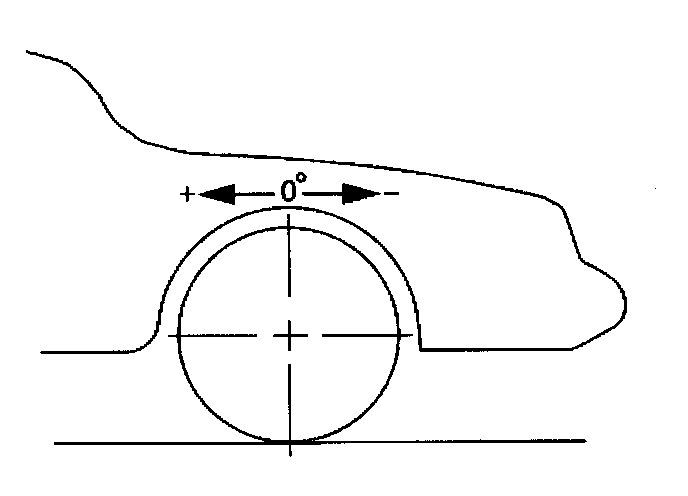 Caster is the tilting of the uppermost point of the steering axis, either forward or backward from the vertical, when viewed from the side of the vehicle. A backward tilt at the top is positive (+) and a forward tilt is negative (-). Caster influences the directional control of the steering, but caster does not affect tire wear. One wheel with more positive caster than the other wheel causes that wheel to pull toward the center of the vehicle. The vehicle will move or lead toward that side with the least amount of positive caster.