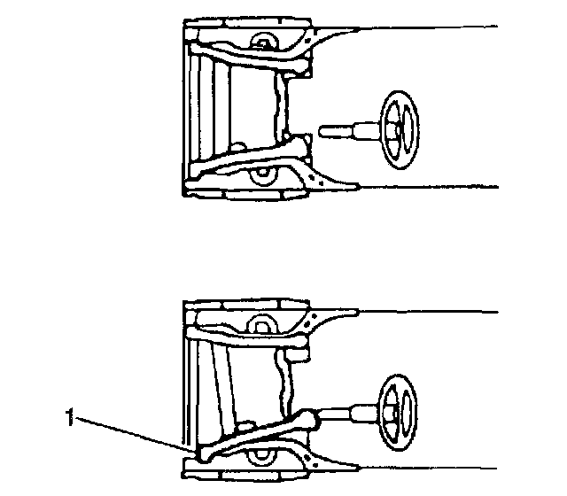 The frame is a rubber isolated sub-frame in the front of the vehicle. The frame supports the engine and the transaxle. The frame provides the mounting point for the front suspension lower control arms. The frame in the upper illustration is normal. Any misalignment of the frame, as shown, causes a misalignment of the front wheels. Movement of the frame usually causes an increase in caster on one side of the vehicle and a decrease in caster on the other side of the vehicle. This can cause the following conditions: